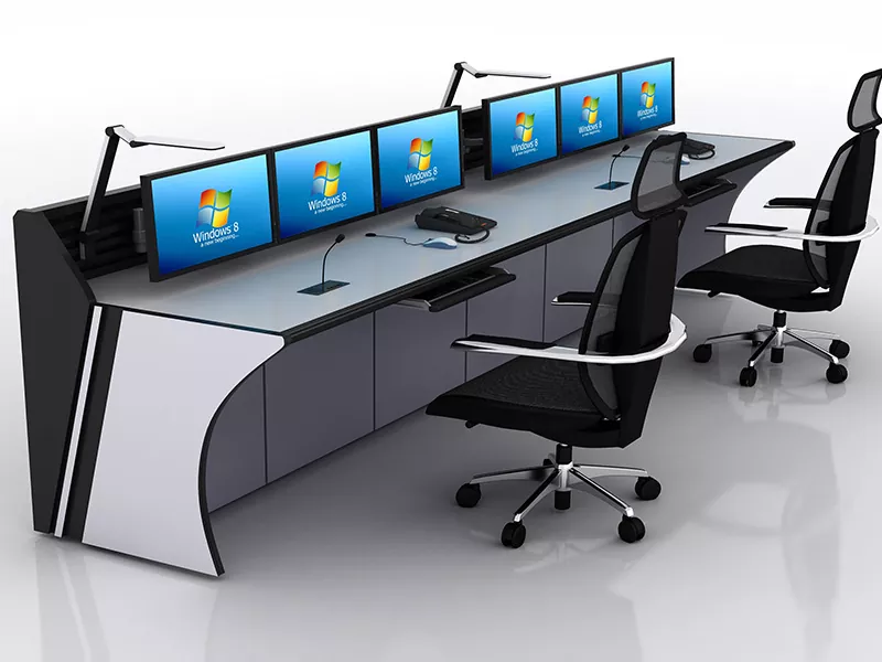 Konsol Pemantauan Double-Seat minangka workstation kamar kontrol profesional sing dirancang kanggo ndhukung loro operator sing kerja bebarengan ing lingkungan pemantauan utawa komando sing dienggo bareng. Dibandhingake karo konsol siji-kursi utawa sistem multi-kursi gedhe, nawakake keseimbangan optimal antarane efisiensi kolaborasi, panggunaan ruang, lan kontrol biaya.